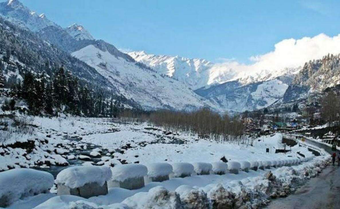 Manali, nestled in the Himachal Pradesh region near Delhi, is a beloved destination for snow enthusiasts. During winter, the landscape transforms into a snowy wonderland with sloping mountains draped in pristine white. The picturesque town offers an idyllic setting for snowfall experiences, where visitors can revel in the crisp mountain air and enjoy the beauty of clear blue skies amidst the snowy scenery.