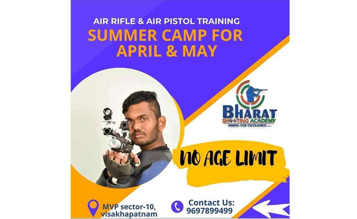 Bharat Shooting Academy is located near AS Raja Grounds in MVP Colony. The summer camp commences on 2 May and will take place till 31 May. Participants will be trained in air rifle and air pistol shooting by professionals. The registration fee for this camp is Rs 3,000. Additionally, the registered persons for this camp can get their hands on imported German-made rifles and pistols for a fee of Rs 4,000. The minimum age requirement to be trained at Bharat Shooting Academy is 7 years.