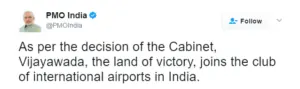 Vijayawada Airport Gets International Status