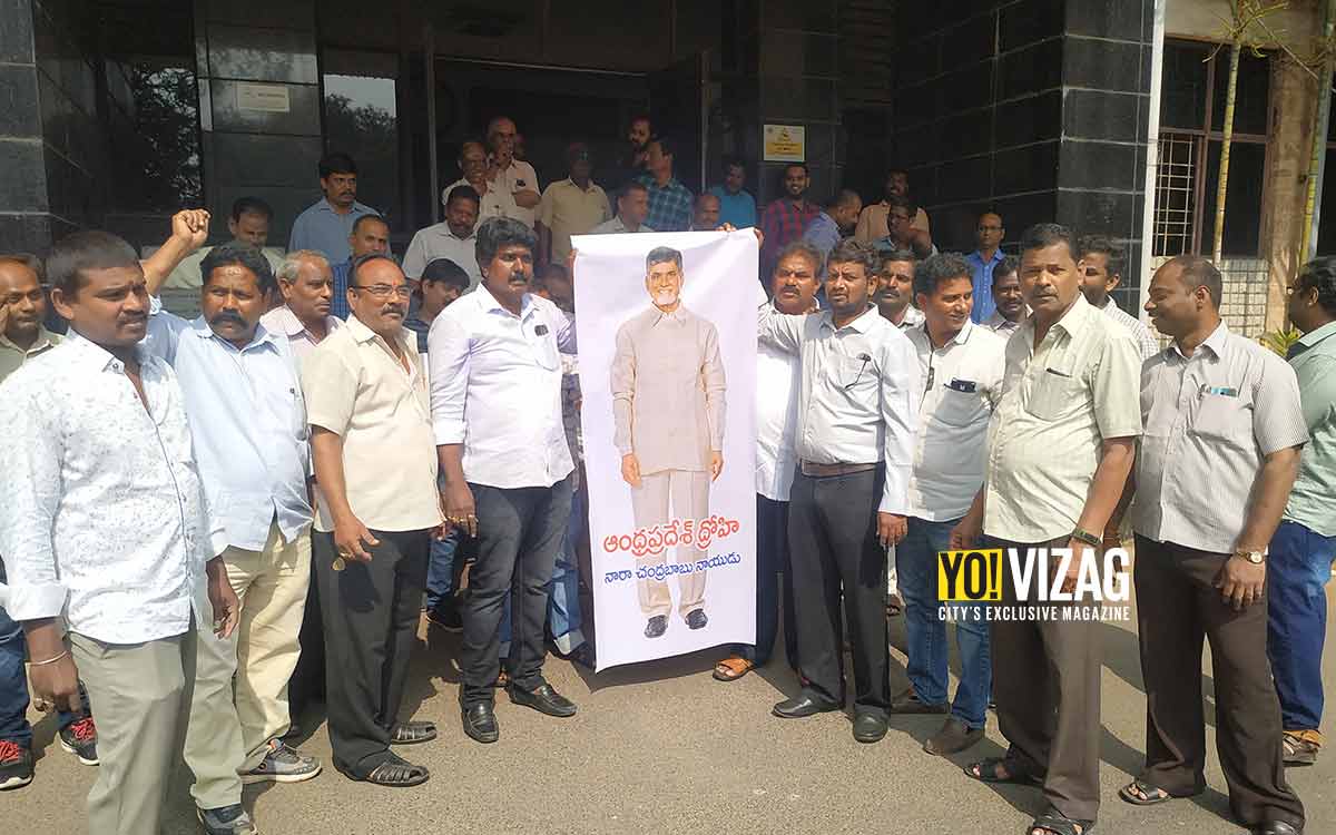 Resenting the opposition to the State Government’s proposal to set up three capitals, the AU Employees Union held a protest march against Telugu Desam Party (TDP) President, Nara Chandrababu Naidu on Friday Morning. The union members rallied from the AU Administration Building in Vizag and raised slogans criticising the former AP Chief Minister for leading the protests against the State Government’s move.