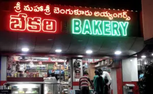 Sri Mahasri Bangalore Iyengars Bakery is quite famous for their bakery products. The tea buns stuffed with aloo palya and the vegetable puffs are quite popular here for their taste. The bread available at this bakery is fresh and of good quality. This bakery is located near the Bus Stop Road.