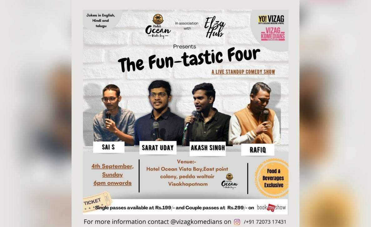 Join the gang of four for a relaxing session before you head back to a routine from Monday. Sai S Mishra, Sarat Uday, Akash Singh and Rafiq are gearing up to entertain you in English, Hindi and Telugu. Passes for the show are available online on Book My Show. Grab yours now and become a part of this growing interest in town. The Vizag Komedians also organise an open mic every Friday at the Gallery café and every Sunday at the Brew Buzz café in Vizag. Check out the @vizagkomedians Instagram handle for more information on events and passes.