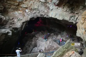 A visit to the Araku Valley is never complete without a trip to the Borra Caves. It features a variety of natural cave formations – stalactites and stalagmites – in various sizes and shapes. Formed around 150 million years ago, the caves are believed to have originated due to the erosion of the subterranean surface. Mainly by mountain streams that flowed to join the Gosthani River. Enhancing the visual pleasure, the colourful lighting, set up by the Andhra Pradesh Tourism Development Corporation (APTDC), breathes life into the interiors of the caves.