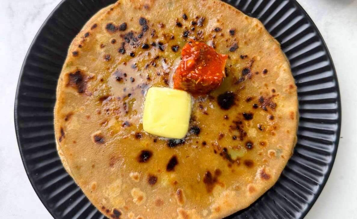 Aloo Paratha is a delectable flatbread stuffed with spiced potato filling. Served with a dollop of butter and yoghurt, it’s a quintessential North Indian delight that encapsulates rich flavours and warmth in every bite.