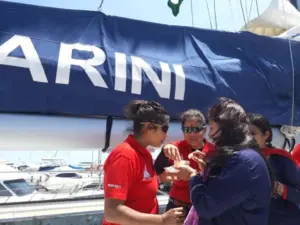 All Women’s Crew aboard Indian Navy sailboat INSV Tarini leaves Freemantle port, Australia for the next stretch of sailing to Lyttleton, New Zealand.