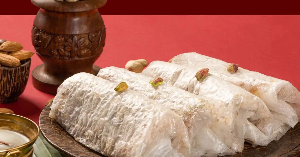 This decadent and rich sweet pastry hails from North India, particularly Uttar Pradesh, and is an essential treat during big celebrations such as weddings and festivals. No big celebration is complete without this. This crispy, milky pastry disc crafted from ghee and flour is topped with a scrumptious filling of malai, rose petals, pistachios, and rabri. Once a royal dessert, this dessert will leave you wanting more.