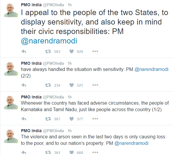 Today, Prime Minister Narendra Modi pleaded the people of Karnataka and Tamil Nadu to make peace.[/vc_column_text][vc_gallery interval=”3″ images=”6771,6777,6776,6772,6773,6774,6775,6779,6778″ img_size=”full”][/vc_column][/vc_row]