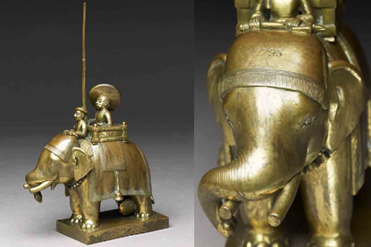 At the centerpiece of the army is the majestic elephant swinging its coiled swirling trunk. The elephant is driven by a mahout with a grand figure in the howdah. The elephant wears a saddlecloth adorned with bells and a headband and a necklace with bells. The inscription ‘Vizagapatam’ on the saddlecloth and 1795 on the headband provides the historic connection to Vizag and the captioning of these figures as Vizagapatam Toy Soldiers.