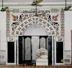 As it stands today, the mosque has an explicit marble prayer hall projecting towards the rising sun, east which can accommodate more than 200 worshippers. The prayer hall is open 24 hours a day for the people who prayer in unity. The heart of the mosque is a small marble pulpit which is decorated with divinely carved shapes of flowers and flora. Ramzan and Bakrid are celebrated with dedication and adherence. It is during these days hundreds of worshippers visit the twenty four year old architecture, perform invocations and complete their day.