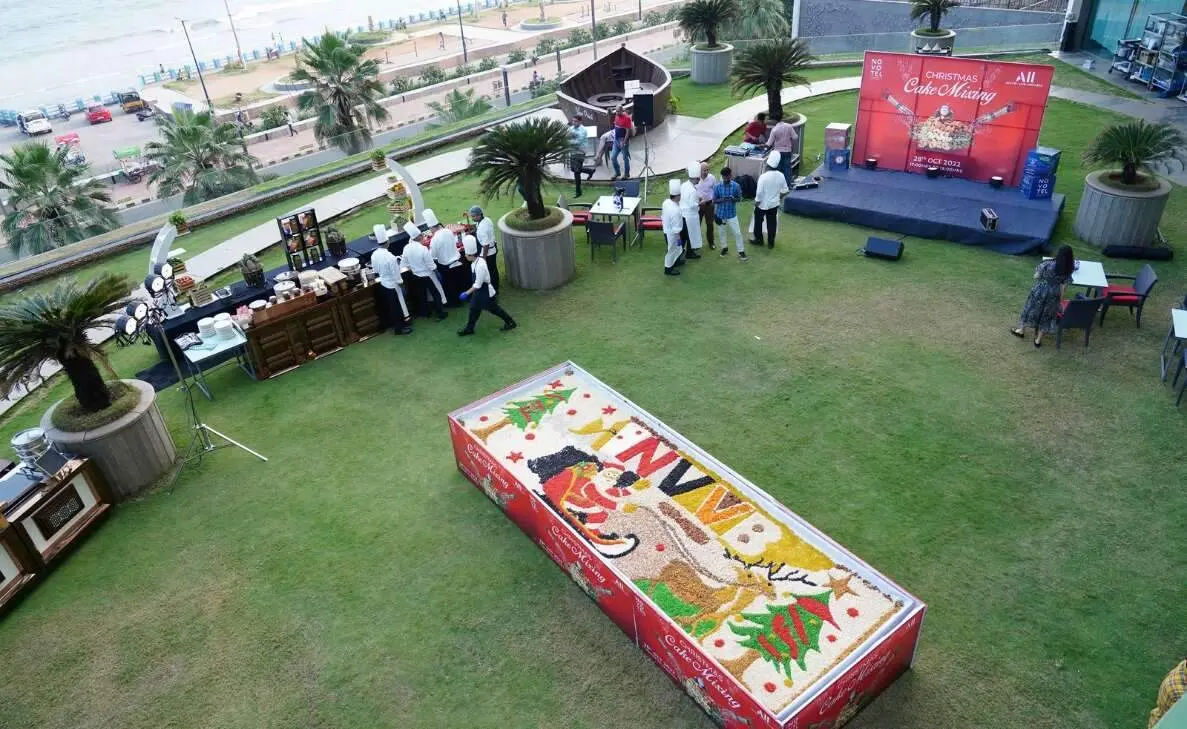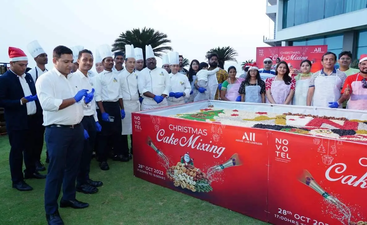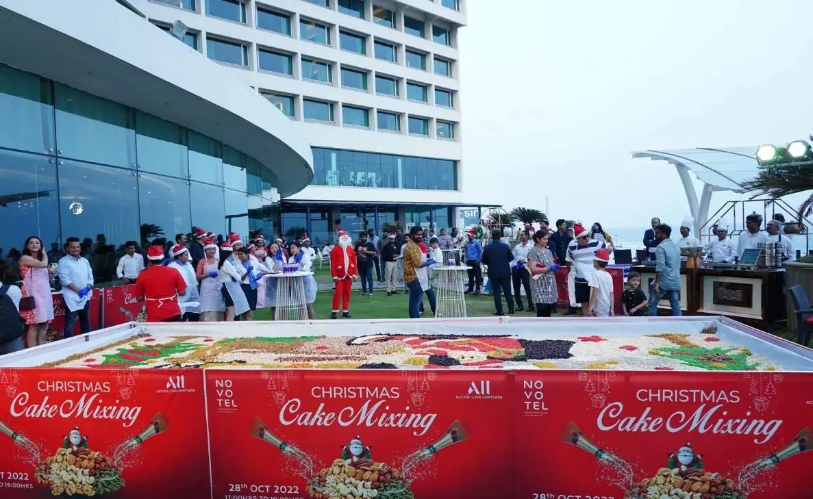 December is over a month away, and the Christmas festivities have already kicked off in the City of Destiny. Last evening, Novotel Varun Beach on the RK Beach Road in Vizag organised a pomp cake mixing event, which attracted the participation of a dynamic crowd. Set on a wide open balcony, surrounded by merry decorations, the festive affair had a smooth run under the guidance of experienced hands.