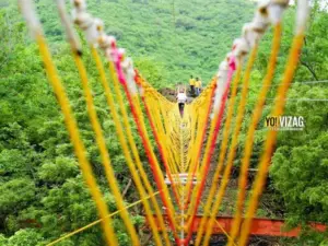 Here’s one of the viewpoints in Kambalakonda that’s not just breathtaking to the eyes but is equally breath-taking for the lungs. Hung 70 meters above the ground, crossing the bridge is an adrenaline favourite. The view from atop it gets prettier with the increase in thrill and excitement.