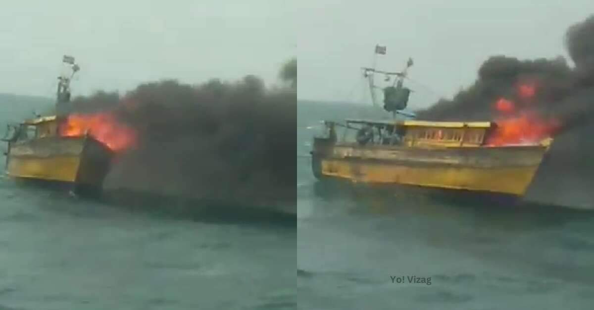 A mechanized fishing boat caught fire a few miles from the Visakhapatnam coast at around noon of 15 September 2024. The blaze, which is suspected to have been caused by an electrical short circuit, completely destroyed the vessel, resulting in an estimated loss of Rs 40 lakh, according to the fishermen.