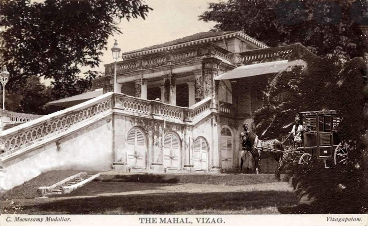 Goday Gajapathi Rao was elected to represent the landed classes in the Madras Legislative Council from 1868 to 1883 and lived at ‘The Mansion’ in Nungumbakum until 1885. In Vizag, his palatial residence was ‘The Mahal’ near Godayvari Veedhi in that old town area. Further down that street were his horse and carriage stables near Select Talkies. The young Rajah’s first wife was Janaki Amma (aka Janakiamma), daughter of Madina Jugga Rao, CSI. She was the mother of his two daughters and she died in 1879 at the young age of 38 years. She was a learned lady fluent in English, Sanskrit and Telugu. Little is recorded of his second wife and, on her premature death, he married his niece Chitty Janakiamma who was the adopted daughter of his sister Ratnayamma who was married to GL Narsinga Rao.