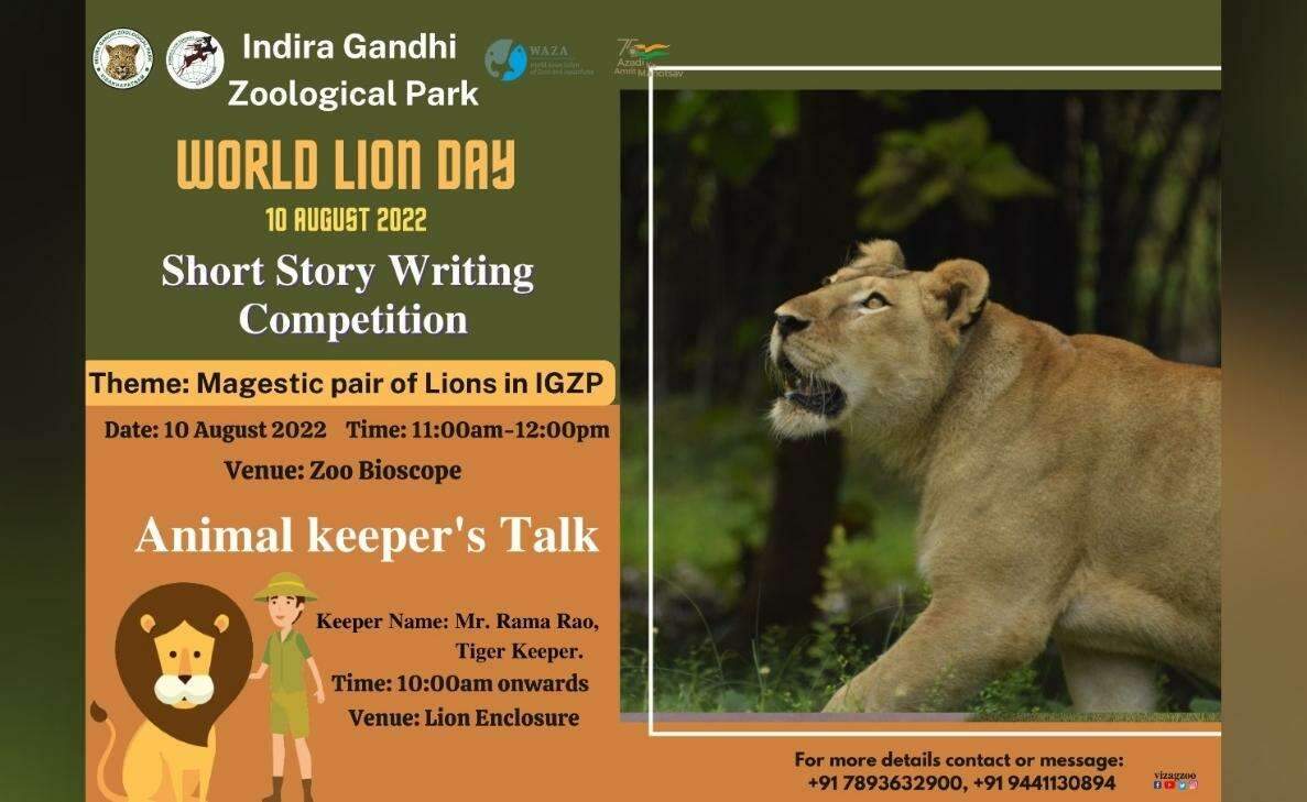 Students have to complete the short story within the given time in this competition which will be held at Zoo Bioscope. All students should participate in these competitions held on World Lion Day and parents should also encourage their children to participate for creating awareness about wildlife, said Dr Nandani Salaria, IFS, Curator, Vizag Zoo. Students can contact +91 9441130894 to register their names for the above-said programs.