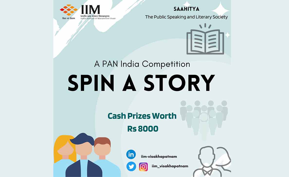 IIM Vizag announced this competition, named Spin A Story, on 20 August 2021. It called for all the interested persons to participate offering cash prizes worth a total of Rs. 8,000. The last date for registering for the competition is 29 August 2021 at 9:30 pm IST.