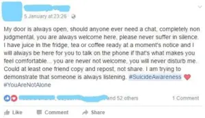 The whole motive behind posting this on social media is to let your friends know that if they are having any bad thoughts, you are here to listen to all their worries without making any judgments. You may not be a therapist, but you can sure save a life by lending an ear.