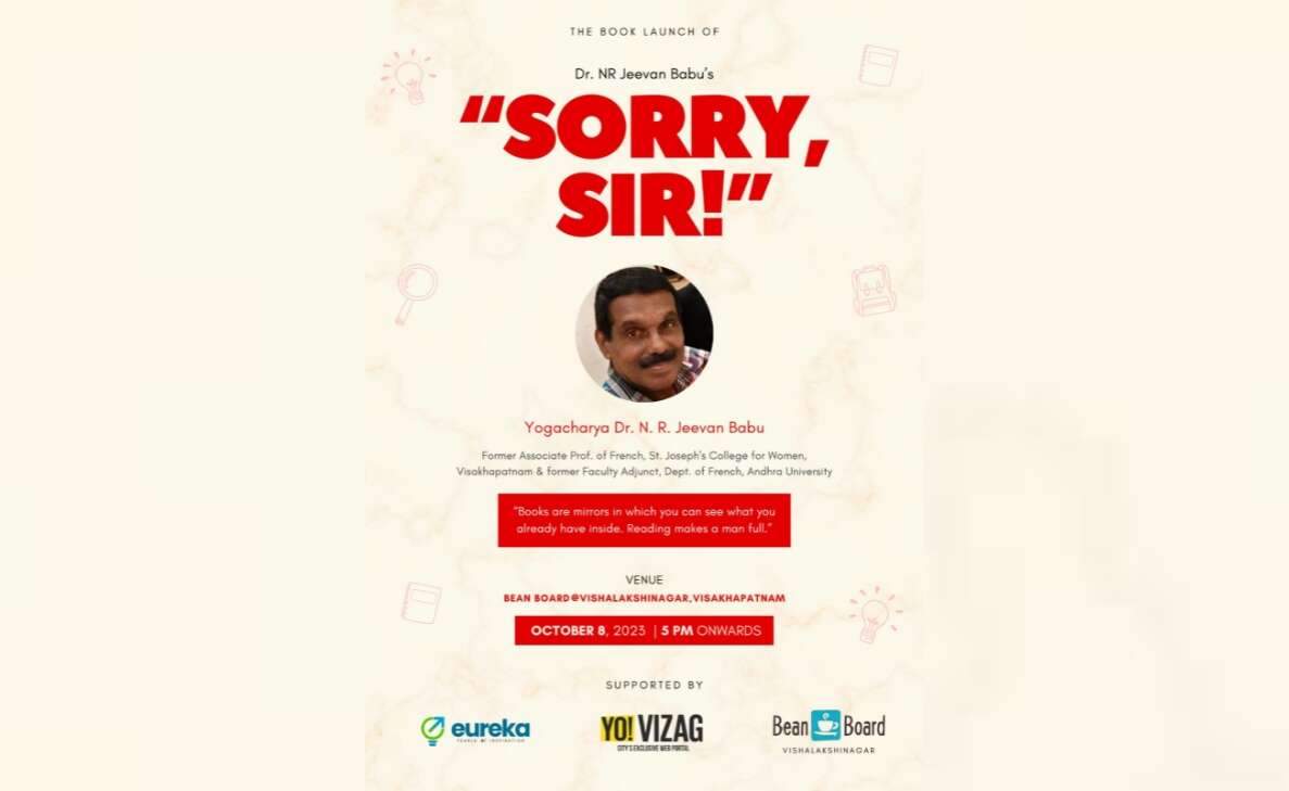On Sunday, 8 October, Dr NR Jeevan Babu will launch ‘Sorry, Sir!’, a book he authored based on college classroom drama and campus scenes, at Bean Board Visalakshi Nagar, Vizag.