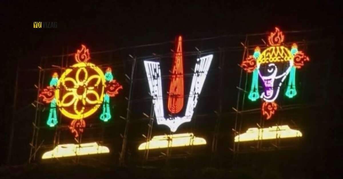 The Simhachalam hilltop, one of the famous tourist destinations in Visakhapatnam, now offers a visual treat to devotees as a new hoarding of shanku chakra namam was installed at the