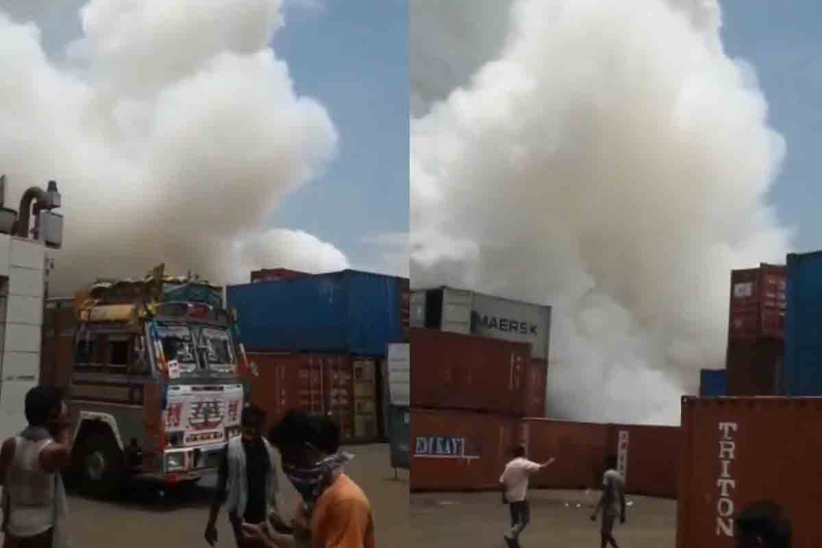 Panic ensued at a container yard, near Visakhapatnam Airport, as the bulk chemicals inside the storage vessel broke into flames on Monday afternoon. Preliminary reports suggest that a toxic chemical