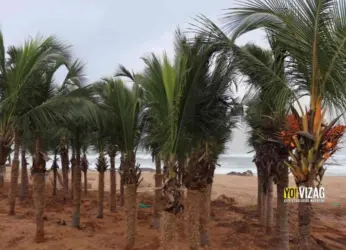 As part of improving the tourism sector at the Vizag beach, coconut trees are being planted on the sands of the beach opposite to YMCA. Sunray resorts, along with Greater
