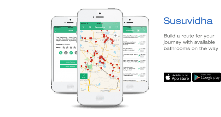 SUSUVIDHA is a GPS based application that helps people find clean bathrooms and toilets near them. It collects information. This app was developed by Mudit Tyagi who is a graduate