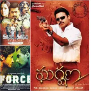 Due to its blockbuster success in Kollywood, the movie ‘Kaakha Kaakha'(2003), directed by Gautham Menon and starring Suriya and Jyothika in the lead roles was, remade into Telugu as ‘Gharshana’ starring Venkatesh Daggubatti and Asin. Later it was remade into Hindi as ‘Force’ in 2011 under the directorship of Nishikanth Kamath, starring John Abraham, Genelia D’Souza.