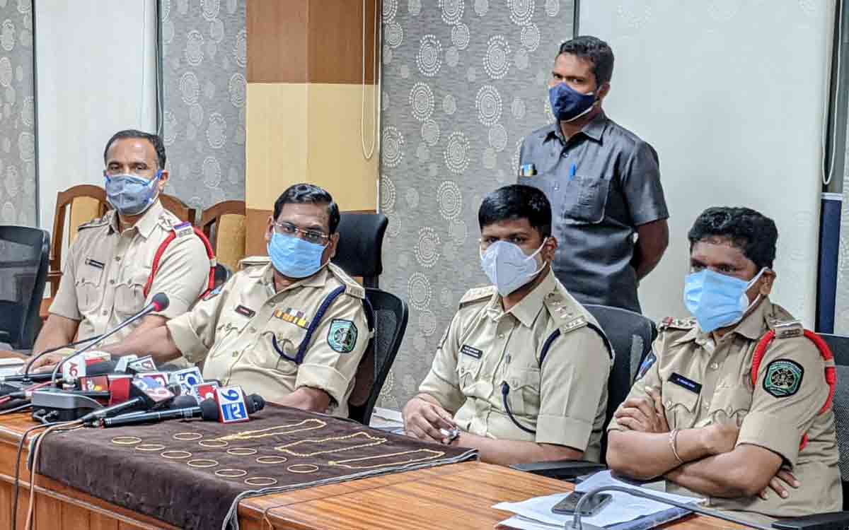 In the first case which happened under Dwaraka police station limits. According to DCI Dwaraka Sub Station Crimes K Rama Rao, the complainant Gullapalli Padma reported the theft of her jewellery she kept in the cupboard between May 5-30. Affected with Covid-19, she was admitted to a hospital and got discharged on May 15. On May 31, she found that 16 tolas Gold ornaments, all worth Rs 4 lakhs, were missing. She raised a complaint at Dwaraka police station limits. K Rama Rao and his team arrested the accused at Hyderabad and made a total recovery of stolen property.