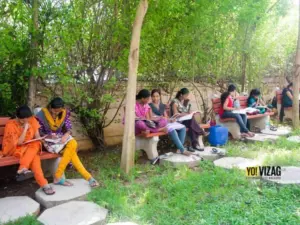 However, with changing times, the new committee headed by Dr. S Vijayakumar as President, DS Verma as Secretary and other members, decided to address challenges faced by the readership. They found that readers would get disturbed by the meetings. A study also showed that people came here primarily for the environment and for group-studies, because this motivated others. To make this space better than before, the library was revamped early in 2017. It now has two meeting halls on the ground floor towards the left, while the reading room on the right has additions of new desks and reading material. The first floor has air-conditioned career-guidance rooms for girls and boys, which are stocked with updated study material. There is a separate section for fiction, children’s books and reading material. A lift has been added for easy access. More space in the cellar has been allotted to students, who sit in rows in complete silence as they prepare for competitive exams. They are provided with daily updates on study material. Also where once it was the librarian’s responsibility to manage the whole facility, now the Visakhapatnam library and facility management have been divided into two aspects and the new staff is in place. The greenery around the building has been enhanced with the CSR support of Essar. Addition of benches in the lawn allow students to sit and read outdoors as well.