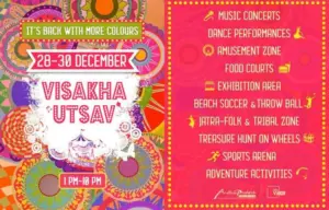 Visakhapatnam’s annual festival is all set to be back with a bang. Visakha Utsav, a celebration of the spirits of Visakhapatnam, is a yearly event conducted by the government of Andhra Pradesh in the month of December. This 3-day long festival not only entertains the crowds with many captivating events but also provides a perfect platform to showcase the proud culture, arts, crafts, music, and other distinctions of Visakhapatnam.