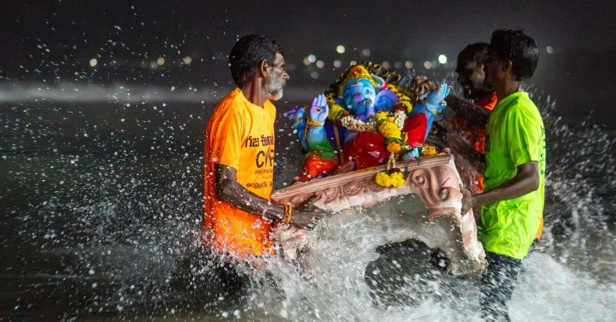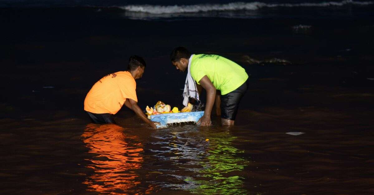 So, here are some exclusive of the pictures of how Vizag celebrated Ganesh Nimarjan at RK Beach in 2025: