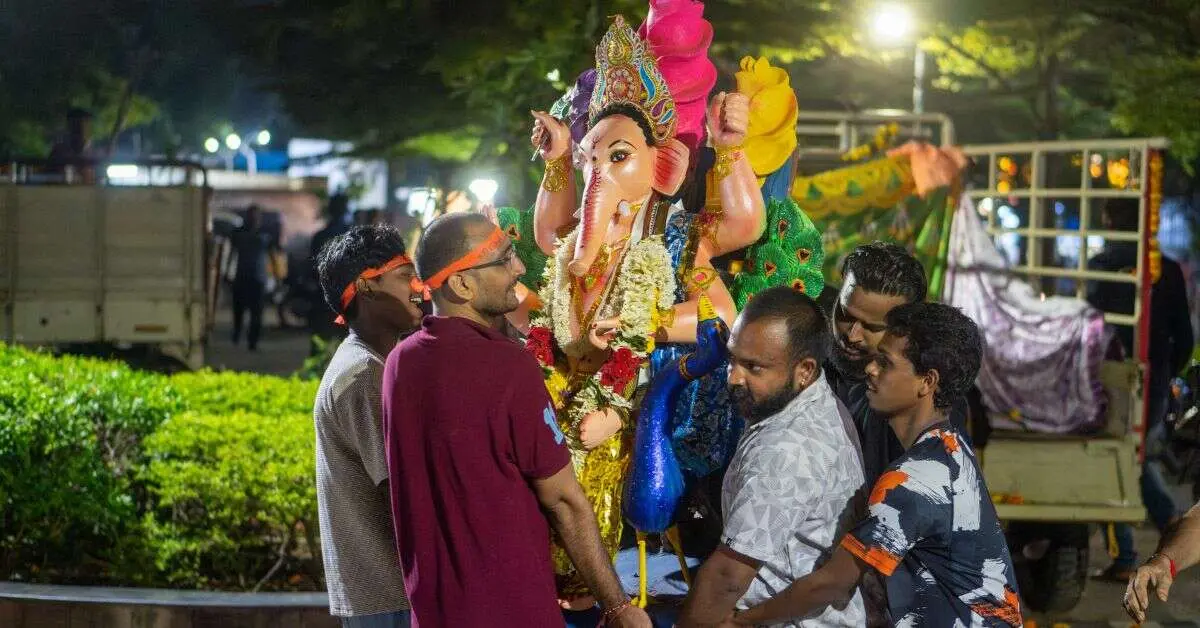 Many creative and innovative pandals were set up throughout the city to celebrate Gajapathi’s birthday. Some of the pandals include a 100-foot Ganapathi idol surrounded by one crore Shiva lingas, an 111-foot seated Sri Sundara Vastra Maha Ganesha idol made with one lakh sarees in Gajuwaka, and a 2,000-kg pure silver Ganesh idol, designed as a replica of the Tirumala Tirupati Devasthanam temple at RK Beach, among others. Families and communities gather with devotion to celebrate the new beginnings, wisdom, wealth, and good fortune during this divine festival.