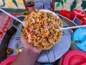 This Bhel Puri is unlike any other street foods you get in Vizag. A hawker sells this must-have street-food with a piece of coconut as the spoon. The bhel however is served with delicious chutneys which add to the sweet and sour flavours.