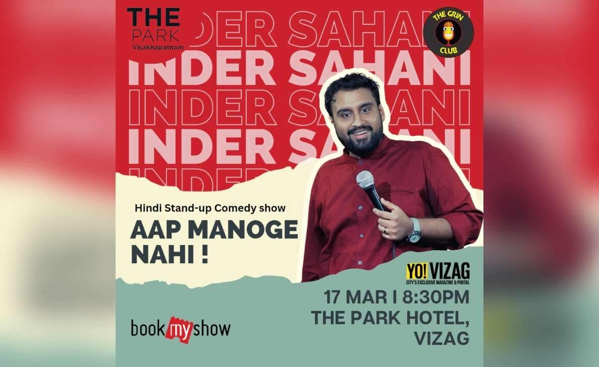 After receiving an overwhelming response from the audience in Vizag in 2021 and 2022, Inder Sahani is all set to make a comeback to the city with his latest show, Aap Manoge Nahi. This show has toured across 50+ cities with The Grin Club, and now, Vizag is set to witness his rib-tickling performance on 17 March 2023, at 8:30 PM.